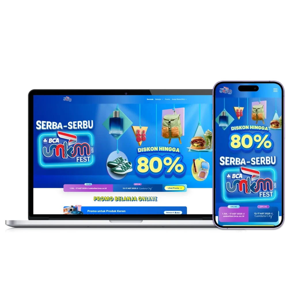 BCA UMKM Fest is an annual national initiative by Bank Central Asia (BCA) to empower and promote Indonesia’s micro, small, and medium enterprises. For the 2025 edition, BCA needed a robust digital platform capable of supporting a hybrid festival experience, combining high-traffic online activities with offline programs held in Jakarta.